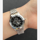 ساعت زنانه الگانس نقره ای صفحه مشکی طرح سه موتور