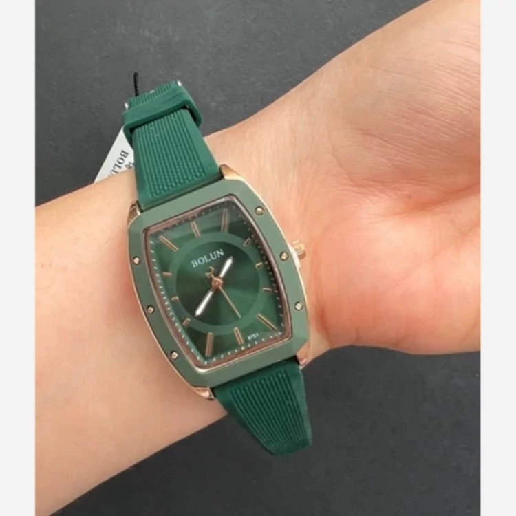 ساعت مچی دخترانه بند سبز صفحه سبز