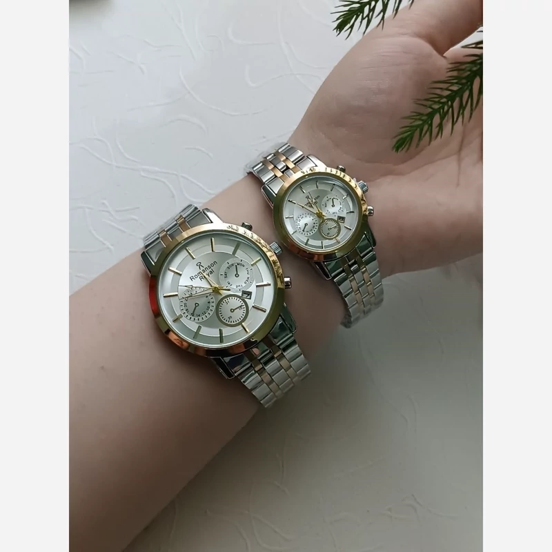 ساعت ست رومانسون طلایی نقره ای صفحه سفید