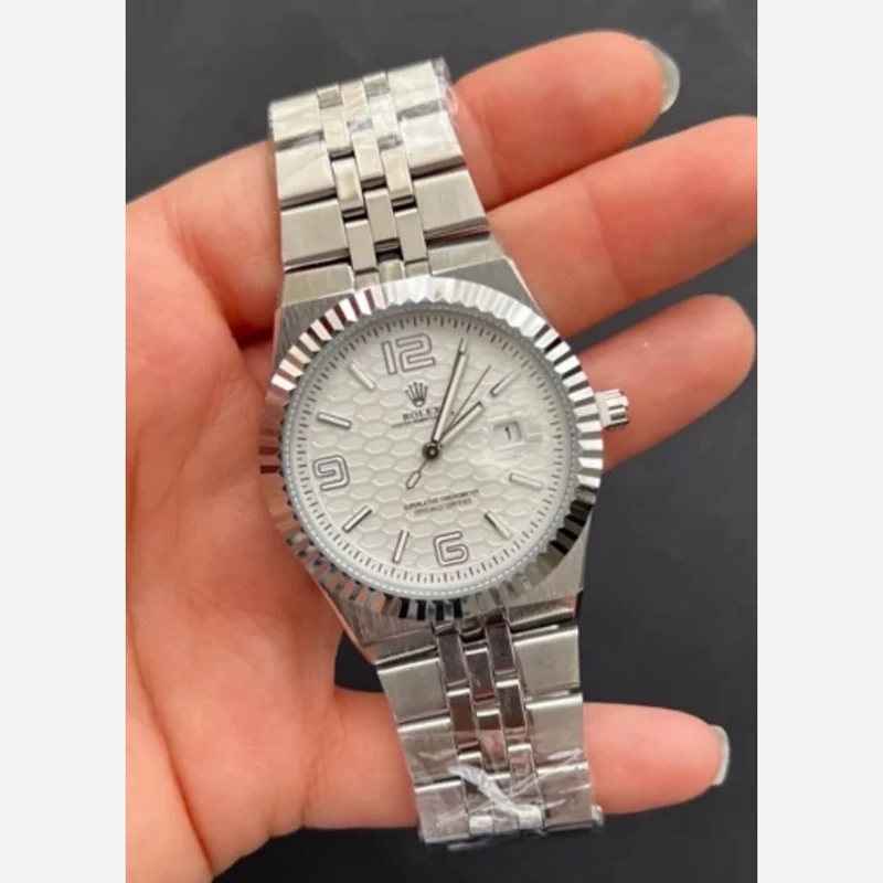 ساعت مردانه رولکس نقره ای صفحه سفید طرح جدید