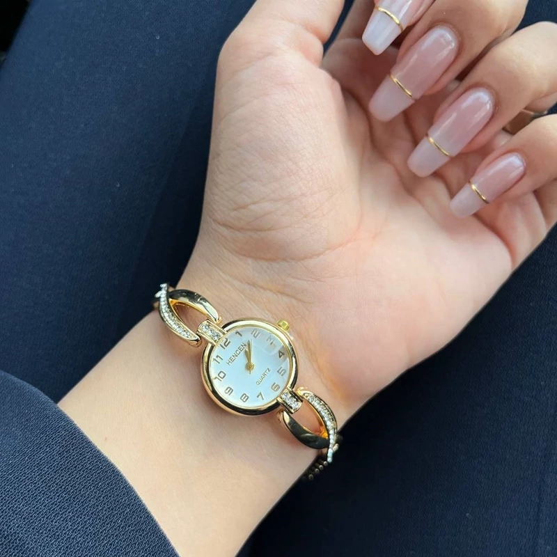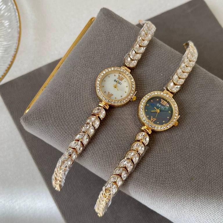 ساعت نگینی زنانه بند گندمی با ثبات رنگ بالا ساعت مچی زنانه مجلسی