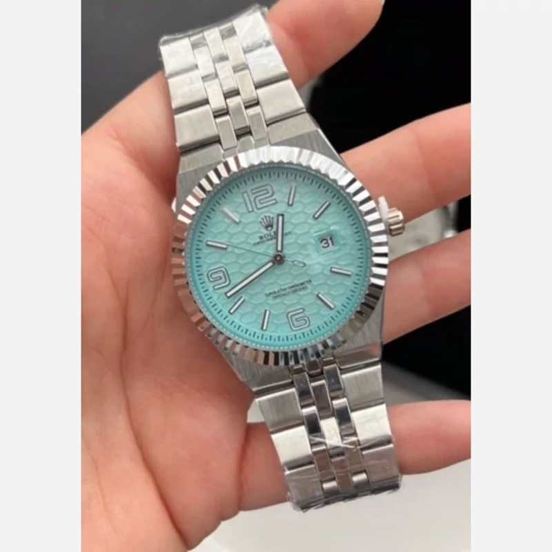 ساعت مردانه رولکس نقره ای صفحه فیروزه ای